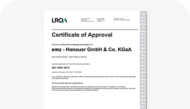 Our company is certified according to DIN EN ISO 14001. This certification confirms our structured environmental management and our commitment to sustainable, resource‑efficient processes.
